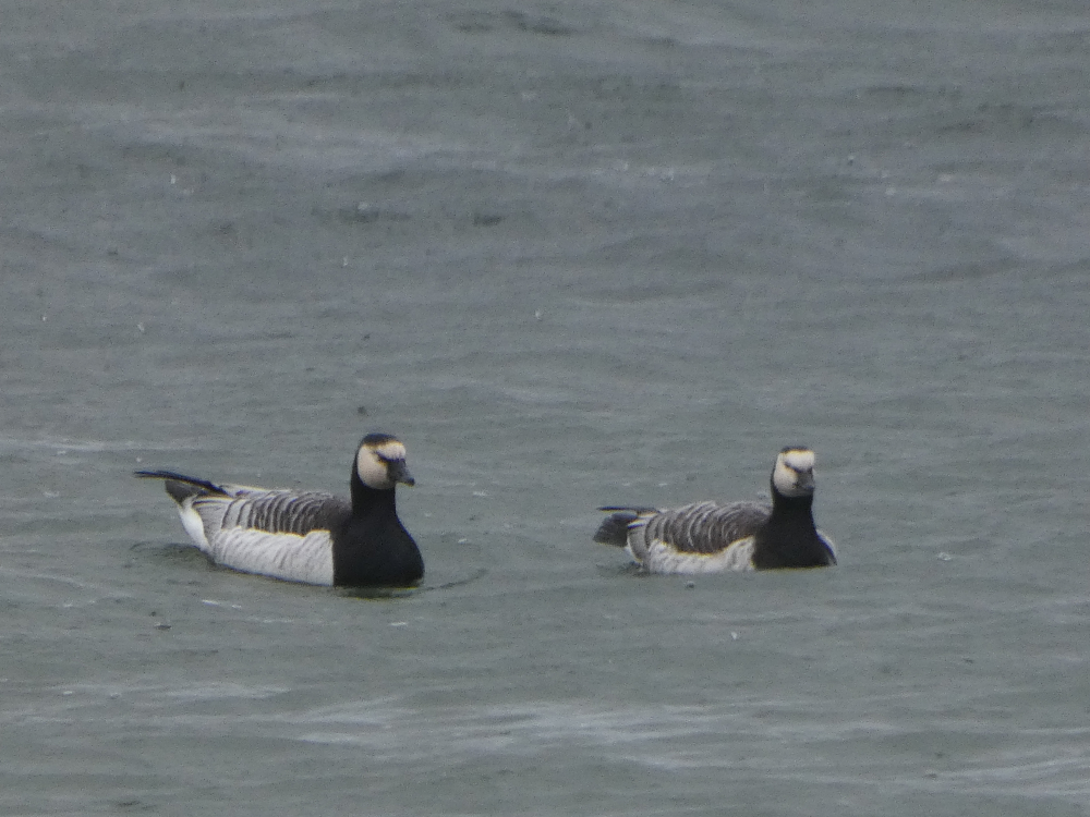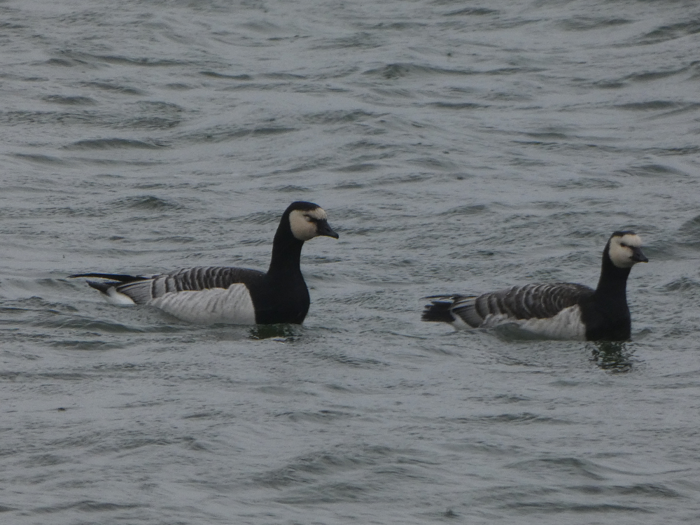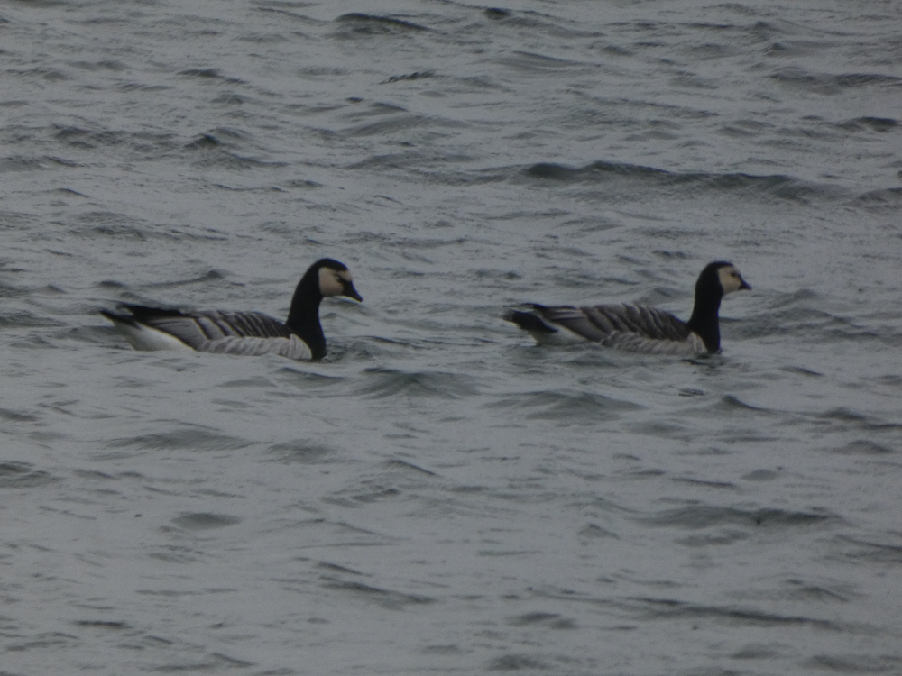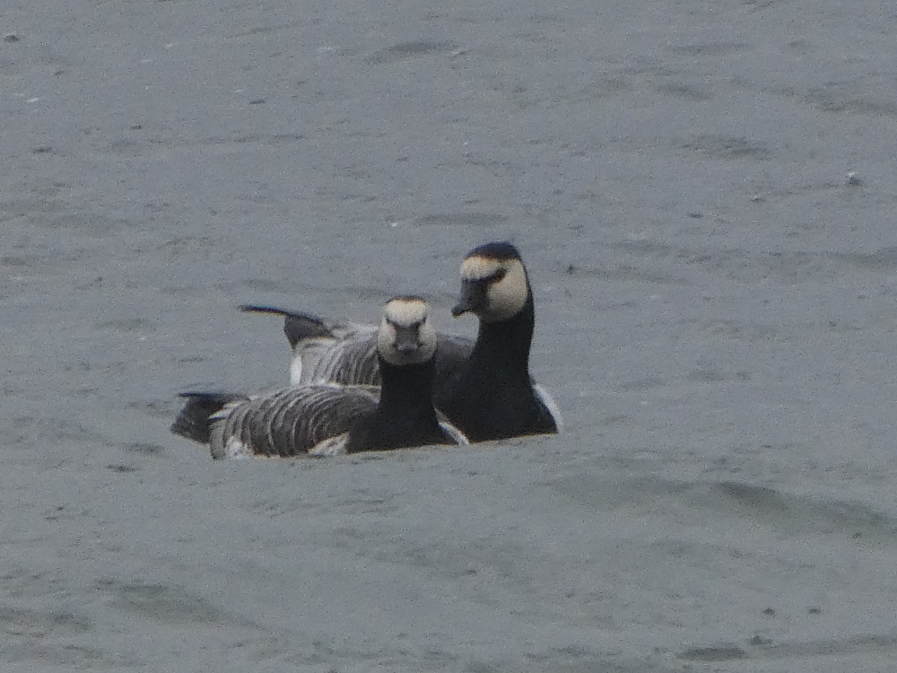 Trátase dunha ave mediana de ata 70 cm de longo, cun peso que oscila entre 1,21 e 2,23 kg. A súa cara branca contrasta co pescozo negro e coas partes escuras e grises do resto do corpo.