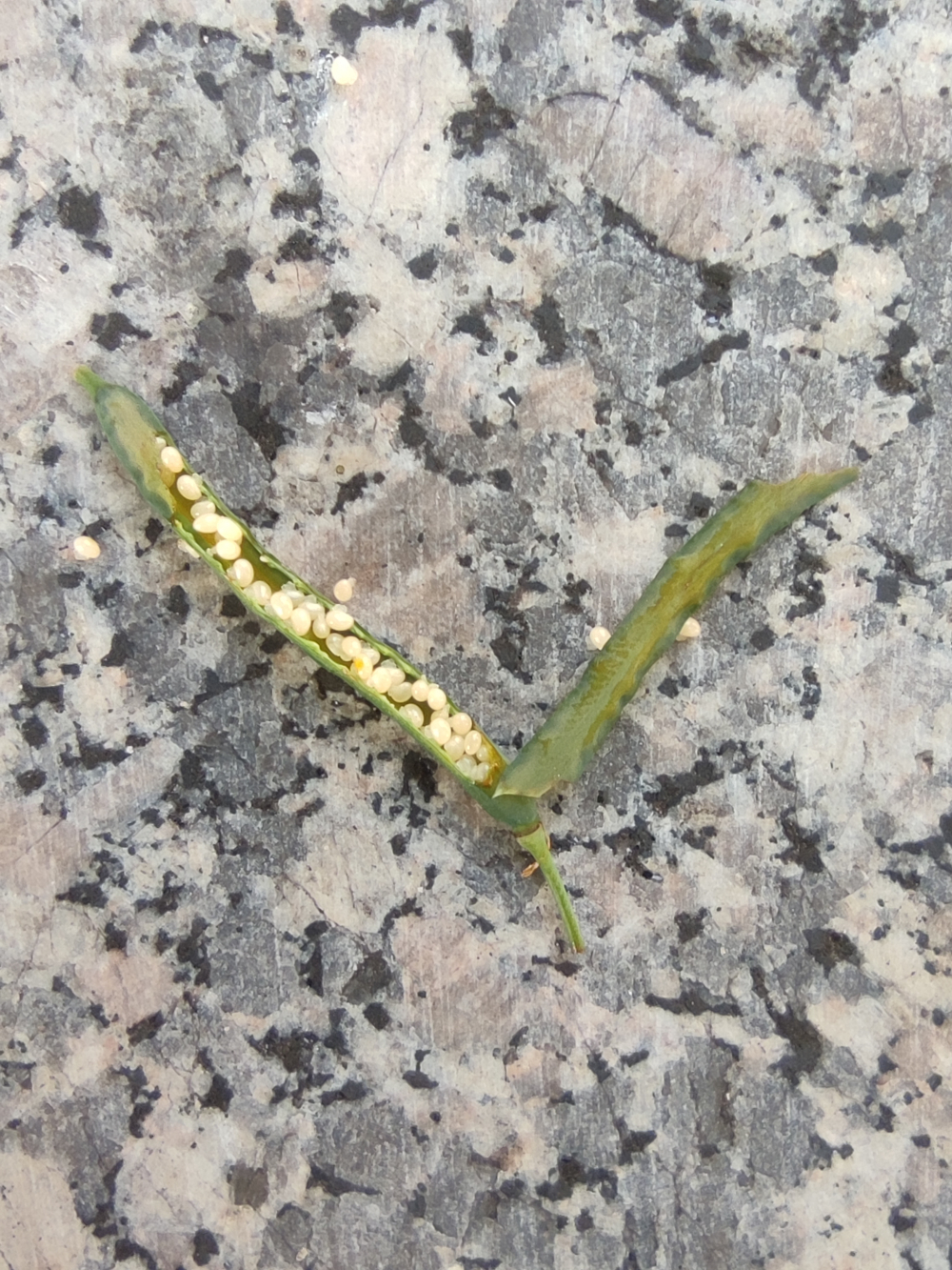 O froito son cápsulas de 30-50 mm de longo e 2-3mm de ancho.